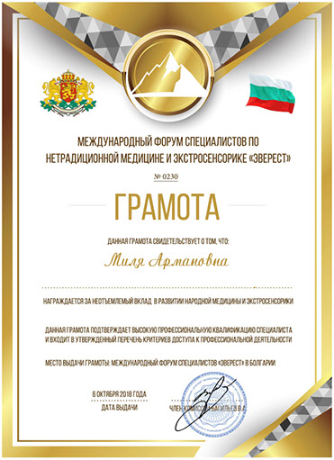 Несколько лет назад к Миле Армановне обращалась моя мама - тогда она заказывала виноотворот для отца. И вот уже более 7 лет он не пьет вообще. Я, будучи 27-летней девушкой, ни разу не состояла в отношениях и никак не могла встретить свою половинку. С мамой мы в очень близких отношениях. Она порекомендовала мне обратиться к ясновидящей. Дала мне номер телефона бабушки Мили. Ясновидящая сама рассказала о том, что в жизни меня преследует одиночество и, просмотрев будущее, не увидела там никого... Но, как она сказала, нет повода для отчаяния и расстройства. Одиночество можно отвернуть и сделать приворот на вторую половину. К этому мы в итоге и пришли... Обряд, также как и просмотр, проводился по фотографии. Быстро или нет - не мне судить - примерно через полгода я встретила своего будущего мужа. И еще через год мы сыграли свадьбу! До сих пор сложно поверить, что люди могут творить такие чудеса. Спасибо бабушке Миле!